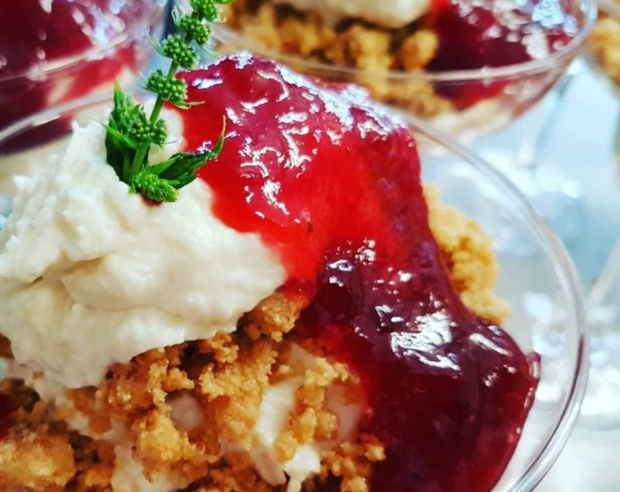 • Cheesecake με κατίκι Δομοκού, δύοσμο και φράουλες